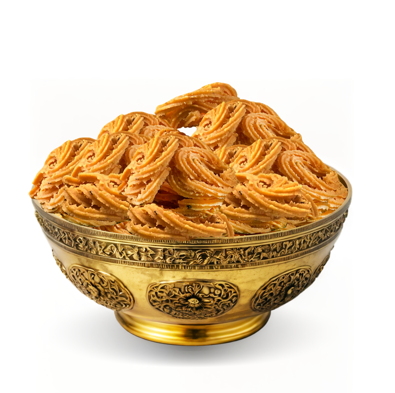 INGREDIENTS: Rice Flour, Fried Gram Flour, Butter, Sesame, Jeera. Ajwain, Asafoetida. Chilli Powder, Salt & Edible Veg Oil.